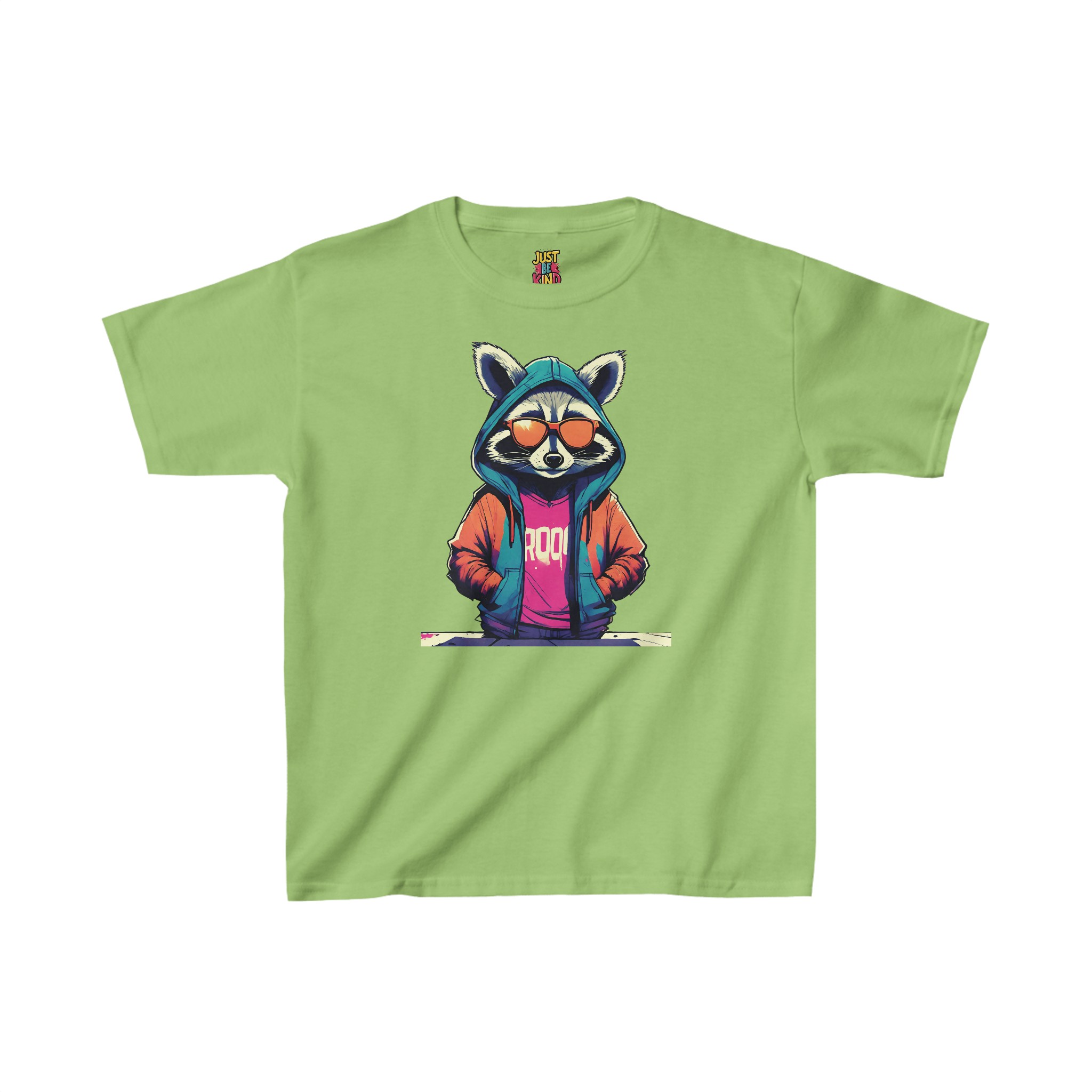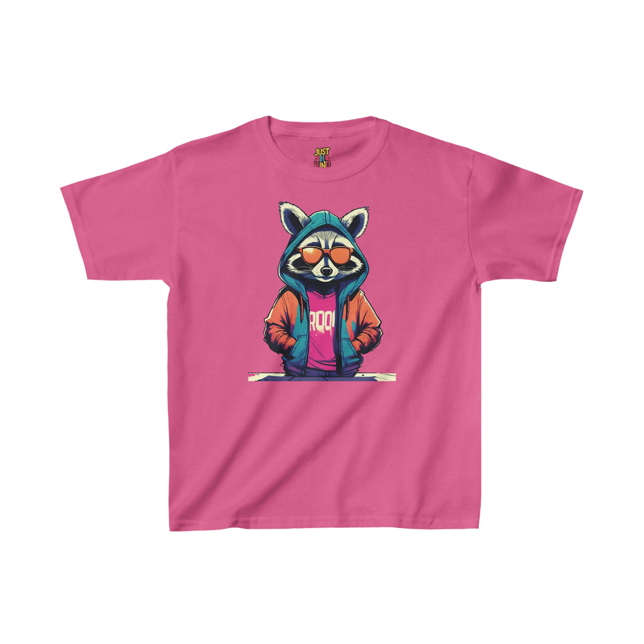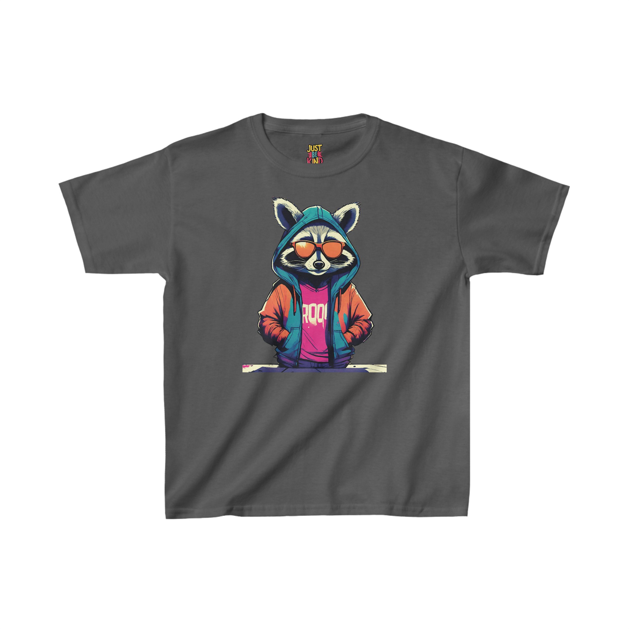 The kids heavy cotton tee is perfect for everyday use. The fabric is 100% cotton for solid colors. Polyester is included for heather-color variants. The shoulders have twill tape for improved durability. The collar is curl resistant due to ribbed knitting. There are no seams along the sides.